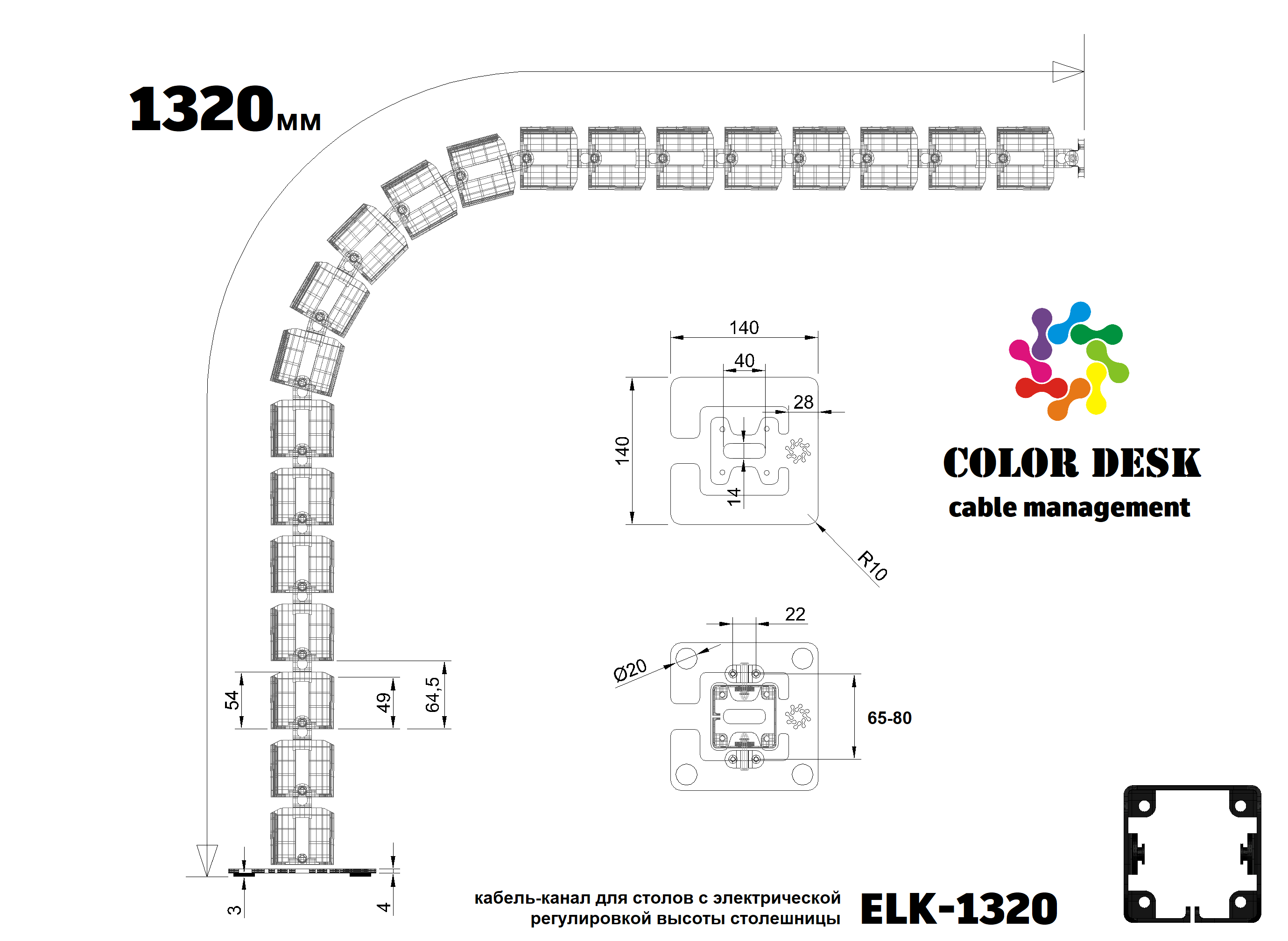 ДЛИНА КАБЕЛЬ КАНАЛА – 1320 ММ (20 звеньев).
