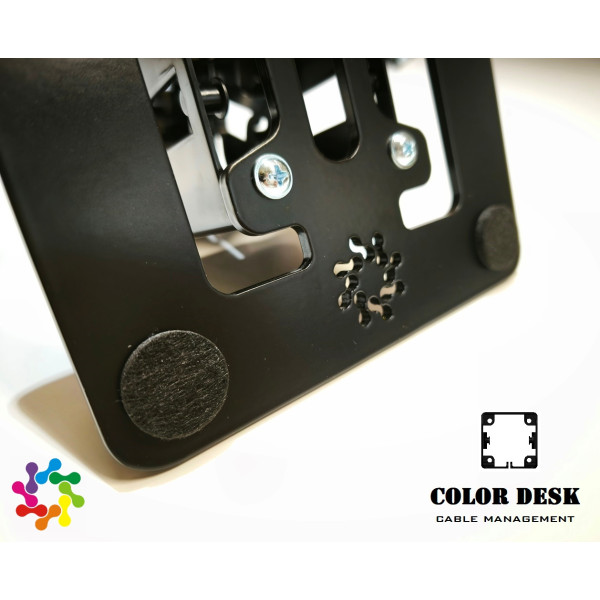 4. Вместо бутафорского и бесполезного пластикового основания он оснащён настоящим большим металлическим основанием, выполненным из 4-х мм стали, на котором предусмотрены войлочные демпферы для защиты самого основания и поверхностей, на которых находится кабель-канал.