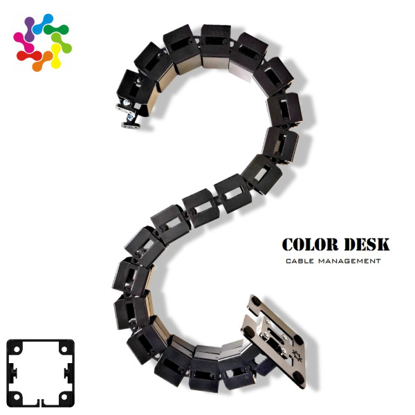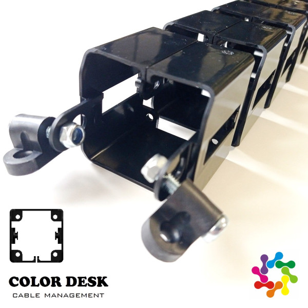 Канал для проводов ELK-1320 обладает хорошей гибкостью, но при этом он хорошо держит форму и не ложится на пол даже если стол находится на минимальной высоте. Эта, на первый взгляд, мелочь имеет очень важное значение во время эксплуатации письменного стола и кабель-канала, работающего вместе с ним.